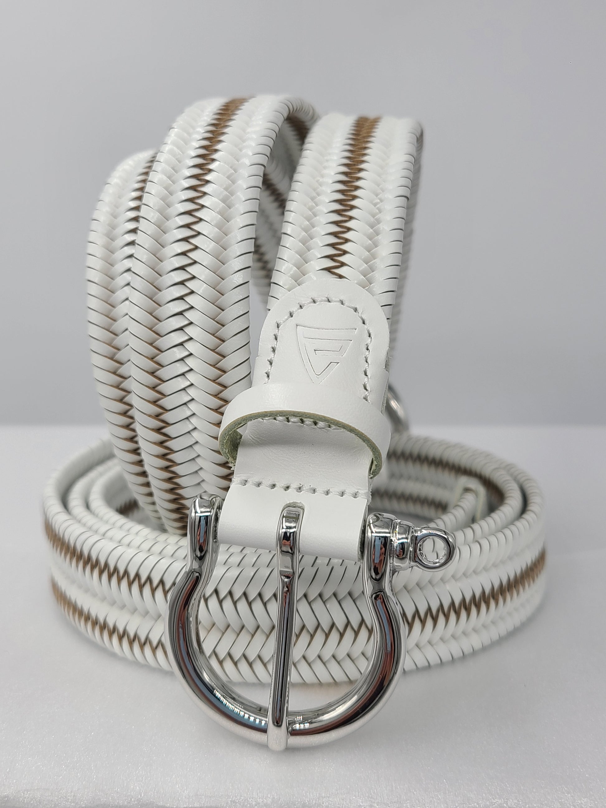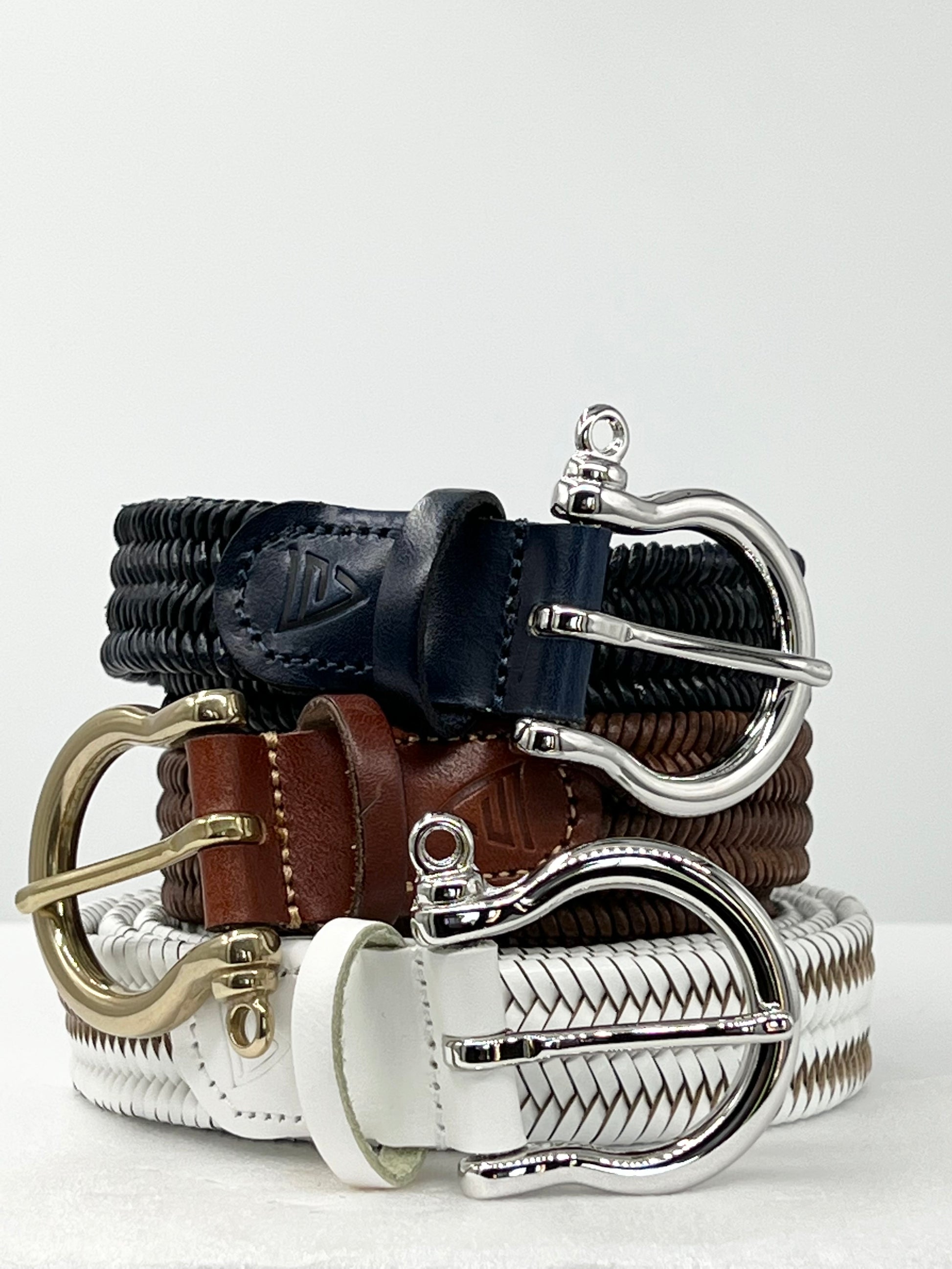 One of our newest additions to the ladies' collection is this sporty yet stylish stretch leather belt with a petite version of our classic equestrian buckle. At 25MM wide the Luna is our thinnest belt and is perfect for the golf course, equestrian or any favorite past time . This versatile piece can be easily dressed up or down with your wardrobe.
